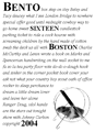 | Bento 13 8/02 | HTML, PDF | It's Not Who You Know, It's Whether You Need Bifocals; My Moment in the Sun; Annoying Escort; Big Ball of Fire in Sky; Lucky Rocketship Underpants; Hollywood Forever; Adopt Me! | |