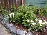 The new dwarf lilac has buds too. Guess the tomatoes didn't swarm over it TOO badly last summer. |