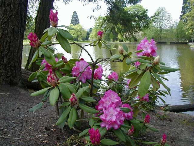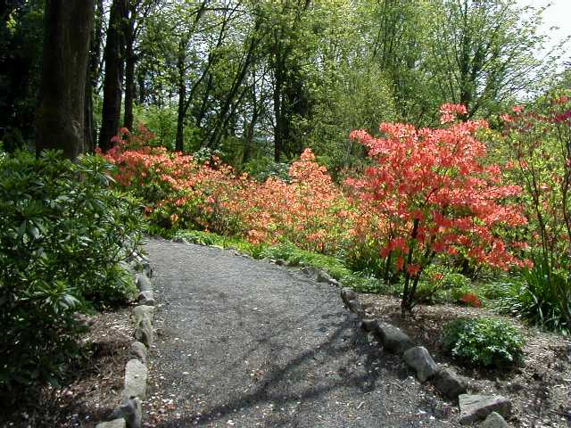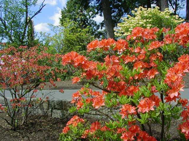 The Grand Patio. There's azaleas, a hydrangea, and a couple small rhodies here that will bloom later. On the far right is a